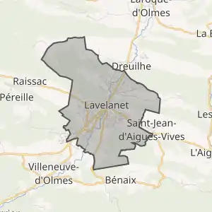 - Розташування муніципалітету Лавелане на мапі Франції та сусідні муніципалітети