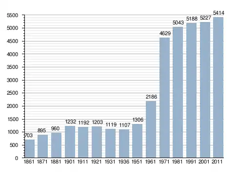 Станом на 31 грудня 2014 року в муніципалітеті офіційно проживав 481 іноземець з 50 країн, серед них 143 громадяни країн Євросоюзу та 25 громадян України.[4]