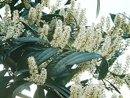 Вічнозелений кущ або дерево від малого до середнього розміру, що виростає до 5-15 метрів у висоту, рідко до 18 метрів, зі стовбуром до 60 см завтовшки. Листя темно-зелене, шкірясте, блискуче, (5–)10–25(–30) см завдовжки і 4–10 см завширшки, з дрібно зубчастим краєм. При подрібненні листя може мати запах мигдалю. Квіткові бруньки з'являються ранньою весною і розкриваються на початку літа в прямостоячих 7–15 см суцвіттях по 30–40 квіток, кожна квітка діаметром 1 см, із п'ятьма кремово-білими пелюстками і численними жовтуватими тичинками із солодким запахом. Плід — невелика вишня діаметром 1–2 см, чорніє при дозріванні на початку осені.[3][4]