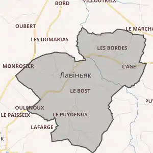 - Розташування муніципалітету Лавіньяк на мапі Франції та сусідні муніципалітети