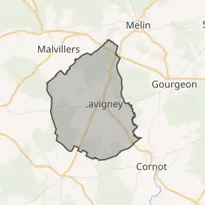 - Розташування муніципалітету Лавіньє на мапі Франції та сусідні муніципалітети