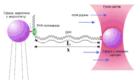 |url=(довідка). Microsc Res Tech. 44 (5): 378–86. PMID 10090214. Процитовано 7 січня 2011. - Simmons RM, Finer JT, Chu S, Spudich JA. (1996). Quantitative measurements of force and displacement using an optical trap. Biophys J. 70 (4): 1813–1822. PMID 8785341. Архів оригіналу за 29 березня 2006. Процитовано 26 травня 2006.