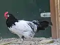 У курей пір'я в хвості не такі довгі, але зате мають тонку білу окантовку по краях. Лакенфельдери мають виражений червоний прямостоячий гребінь і кремово-білі мочки вух. Дзьоб сірий, стандартних розмірів, гармонійно поєднується з сірими ногами птиці.
