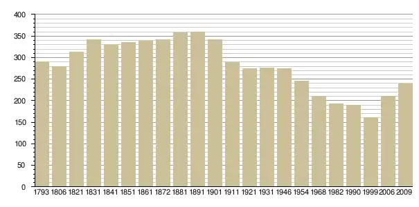 Динаміка населення (base Cassini de l'EHESS pour les nombres retenus jusque 1962[3], base Insee à partir de 1968 (population sans doubles comptes puis population municipale à partir de 2006)[4] · [5] ):