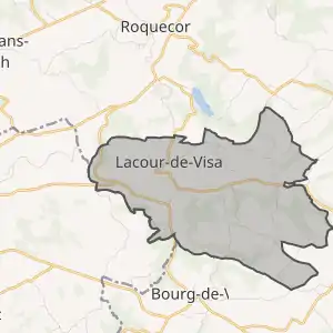 - Розташування муніципалітету Лакур на мапі Франції та сусідні муніципалітети