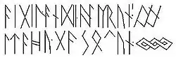 ![]() Рунічний напис на так званій Пфорценській пряжці, письмова пам'ятка ймовірно лангобардською мовою | |