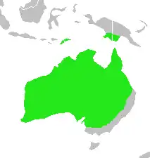 Вид поширений в Австралії (ареал займає майже всю частину країни, за винятком Тасманії та південно-східного узбережжя), на півдні Нової Гвінеї (південніше річки Флай), на острові Тимор та декількох дрібних островах. Місце проживання цих птахів представлене відкритими трав'янистими ділянками сухих і напівзасушливих саван з наявністю ізольованих дерев.
