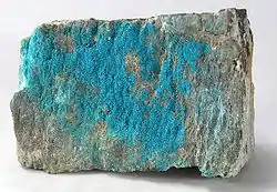 Є вторинним мінералом: утворюється під час окиснення халькозину, халькопіриту, ковеліну та інших сульфідів міді. Асоціюється з англезитом, лінаритом, брошантитом.