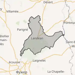 - Розташування муніципалітету Ландеан на мапі Франції та сусідні муніципалітети