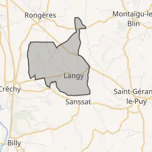 - Розташування муніципалітету Ланжі на мапі Франції та сусідні муніципалітети