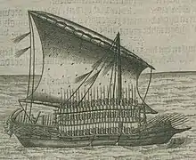 - Sejarah Melayu, 14.9: 126—127. Quote: Because in that era the equipment of Singapura also one hundred three-masted lancaran, and Sungai Raya too (with the same equipment).