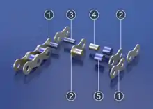 Валик (3) запресований у зовнішні пластини (1) ланцюга і утворює з ними одне ціле. На валик (3) вільно посаджена втулка (4), яка запресована у внутрішні пластини (2). Якщо на втулку (4) встановити вільно ролики (5), то ланцюг буде втулково-роликовим. Такий ланцюг замінює тертя ковзання на тертя кочення при набіганні ланцюга на зірочку, але погіршує динамічні властивості (ланцюг стає важчим).