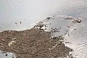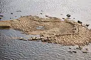 Залишки п'ятої опори Ланцюгового моста біля моста Метро в Києві, березень 2010 року