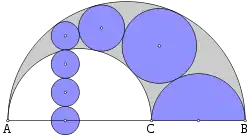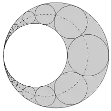 Беремо точки у такому порядку на одній прямій та побудуємо кола та з діаметрами та відповідно, центри яких позначимо та . Фігура, обмежена колами, схожа з арбелосом (але складається з двох дуг окружності замість трьох) та допускає ланцюг кіл, так як і у теоремі Паппа Александрійського. При цьому кожне коло з ланцюга дотикається окружності ззовні, окружності зсередини та двох сусідніх кіл ланцюга.