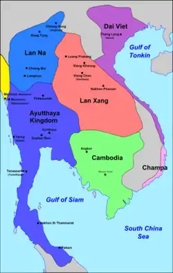 До XIV ст. перебували в залежності від кхмерської імперії Ангкор, тоді утворили власну державу Лансанг (1354—1707). На початку XVIII ст. Лансанг розпався на 3 окремих королівства: Луангпрабанг, В'єнтьян і Тямпасак. Усі вони перебували в залежності від Сіаму. Французька колонізація Індокитаю в XIX ст. поділила лаоські землі між Сіамом (сучасний Таїланд) та Францією. На французькій частині з 1949 року існує незалежна держава Лаос, більша ж частина етнічної території народу лишається в складі Таїланду.