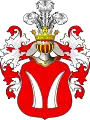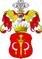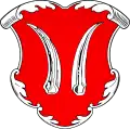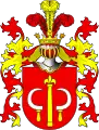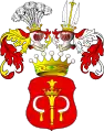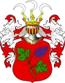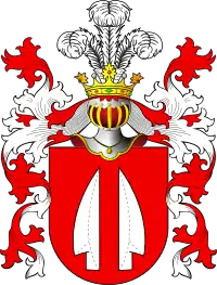 - I: У червоному полі два срібні лемеші, або порізи, або ножі лезом один до одного. Над шоломом в короні три страусині пір'їни. Червоний намет підбитий сріблом.