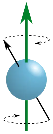 Таким чином, вектор моменту імпульсу прецесіює із незмінними довжиною та кутом до вектора індукції поля з кутовою швидкістю .