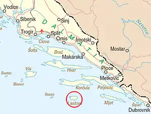 | 42°45′00″ пн. ш. 16°52′00″ сх. д. | |