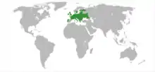 Широколистянолісова і лісостепова зони (в озерах і заплавних водоймах Верхнього і Середнього Дніпра, річок Десни, Тетерева, Ужа, Здвижа, Уборті, Горині, Стира, Случі, Турії, верхньої течії річок Південного Бугу, Сули, Ворскли, Псла, Сіверського Дінця, в Шацьких озерах). Південна межа в Україні проходить по лінії Ужгород – Івано-Франківськ – Вінниця – Черкаси – Полтава – Харків[3].