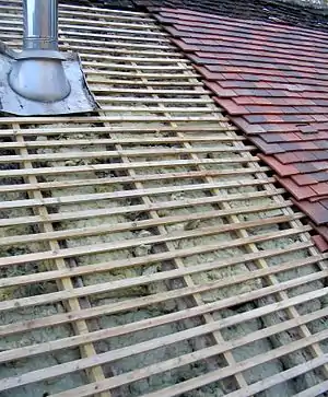 Для криття даху соломою чи очеретом лати кріплять до кроков на відстані приблизно 40 см одна від одної (при традиційному способі лати прив'язували). При способі влаштовування стріхи «внатруску» для кращого зчеплення соломи з обрешіткою на латах кріпили тибелі — дерев'яні кілочки 25 см завдовжки, або робили лати зі сучкуватих жердин[6].