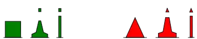 - ліві латеральні знаки мають топову фігуру у вигляді циліндра (квадрата) або плоский верх.