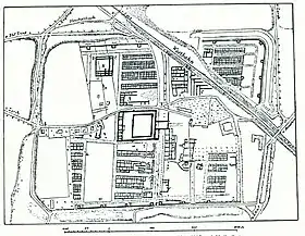 Обсяг забудованої площі охоплював 400×600 м. Усі громадські будівлі розміщувалися неподалік від легіонерського табору. Під церквою св. Лаврентія виявлена велична споруда, що зазнала кількох перебудов, поки не була перетворена на церкву. Очевидно, тут же був і преторій губернатора та командира легіону. Храми або святилища не були виявлені. Є деякі ознаки існування водопровідних каналів. Міської стіни не було, оскільки населення в пізній античності переселялося до легіонерського табру, який на той час був рідко заселений[5].