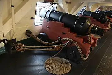 Гармати на палубі фрегата «Конституція», з брюком і талями