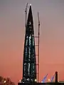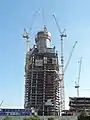 Хмарочос у вересні 2017 року. Робота над ядром завершена, розпочато монтаж шпиля. Висота 365 метрів
