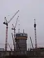 - Коробчатий фундамент складається з трьох щільно армованих плит, нижня — завтовшки 3,6 м[33]. Діаметр арматури становить 32 мм, крок армування — 16,5 см, у нижній плиті встановлено 15 рівнів сіток[34].