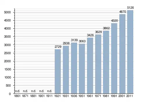 Станом на 31 грудня 2014 року в муніципалітеті офіційно проживали 363 іноземці з 30 країн, серед них 203 громадяни країн Євросоюзу та 2 громадяни України.[4]