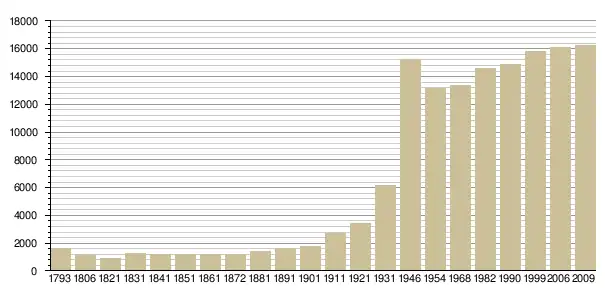 - Avant 1962 : Cassini ; de 1962 à 1999 : recensements INSEE ; recensement INSEE 2006, наведено за французькою вікіпедією