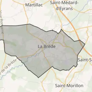- Розташування муніципалітету Ла-Бред на мапі Франції та сусідні муніципалітети