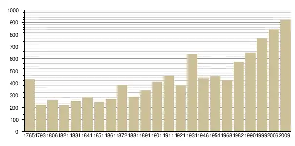 Динаміка населення (Baratier, Duby & Hildesheimer pour l’Ancien Régime ; Insee[3], EHESS[4] pour les chiffres issus des recensements légaux ):