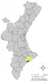 Муніципалітет розташований на відстані[1] близько 370 км на південний схід від Мадрида, 27 км на північний схід від Аліканте.