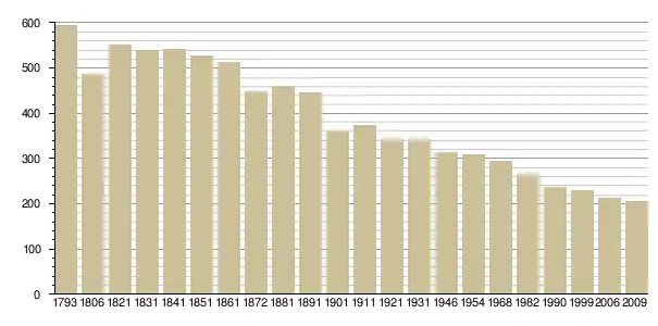 - Graphique d'évolution de la population, 1794-1999, наведено за французькою вікіпедією