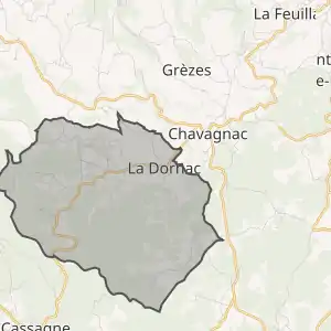 - Розташування муніципалітету Ла-Дорнак на мапі Франції та сусідні муніципалітети