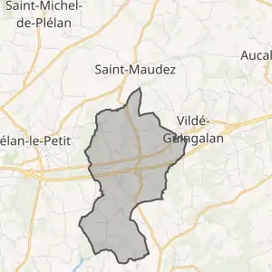 Муніципалітет розташований на відстані[2] близько 340 км на захід від Парижа, 55 км на північний захід від Ренна, 45 км на схід від Сен-Бріє.