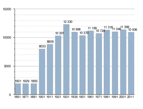 Станом на 31 грудня 2014 року в муніципалітеті офіційно проживали 573 іноземці з 43 країн, серед них 325 громадян країн Євросоюзу та 24 громадяни України.[4]
