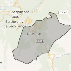 - Розташування муніципалітету Ла-Морт на мапі Франції та сусідні муніципалітети