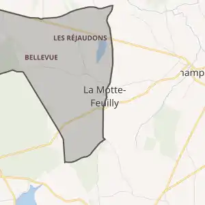 - Розташування муніципалітету Ла-Мотт-Феї на мапі Франції та сусідні муніципалітети