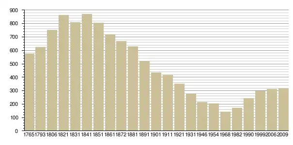 Динаміка населення (Baratier, Duby & Hildesheimer pour l’Ancien Régime ; Insee[3], EHESS[4] pour les chiffres issus des recensements légaux ):