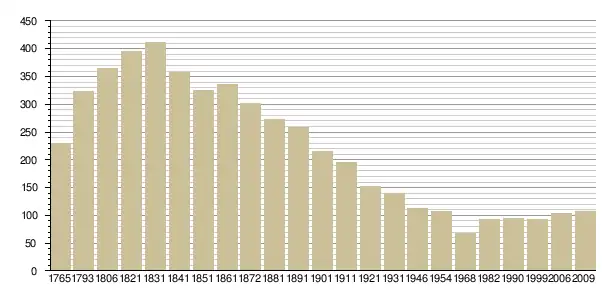Динаміка населення (Baratier, Duby & Hildesheimer pour l’Ancien Régime ; Insee[3], EHESS[4] pour les chiffres issus des recensements légaux ):
