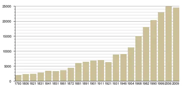 Динаміка населення (base Cassini de l'EHESS pour les nombres retenus jusque 1962[3], base Insee à partir de 1968 (population sans doubles comptes puis population municipale à partir de 2006)[4] · [5] ):