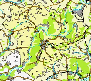На річці є кілька загат, на околиці міста є велике озеро Лебединське. Місто з усіх боків оточене лісовими масивами. Домінуючою породою є сосна.