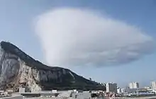 У відповідних умовах характерна хмара «вимпел» утворюється за вітром. Зазвичай він триває близько 5 km (3 mi) на захід від вершини Скелі в бурхливому шлейфі. (Схожі хмари іноді можна побачити в інших місцях, зокрема хмара-вимпел, яка утворюється на Матергорні у Швейцарії.) Ця хмара нависає над центром міста Гібралтар, а на півночі та півдні від південних околиць міста зазвичай сонячна погода.
