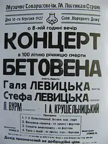 - Барвінський В. Концерт Галі Левицької// Діло. — 1927. — № 255. — 15 листопада.