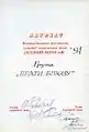 Подяка посольства США за участь в концерті з нагоди приїзду в Україну президента США Біла Клінтона (1995)