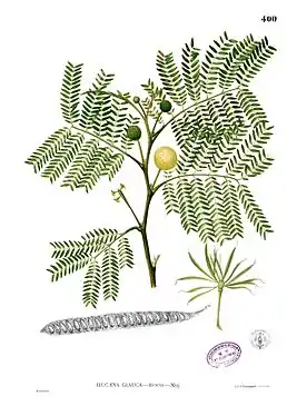 ![]() Ілюстрація Левкени сизої у книзі Flora de Filipinas | ||||||||||||||||||||||||