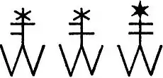 - Знак (x) означає, що нащадки невідомі, знак ( ") — знак повтору, знак (∞) — чоловік (дружина), знак (†) — помер (ла); див. також Родословная схема.