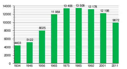 За даними перепису населення 2011 року у місті проживали 9872 особи.